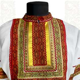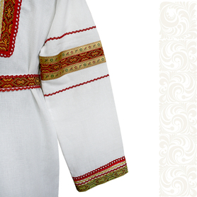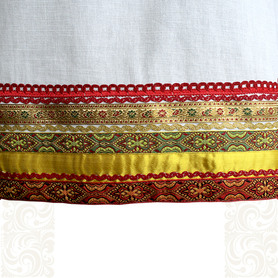 Материалы: лен, жаккардовая тесьма с обережными символами