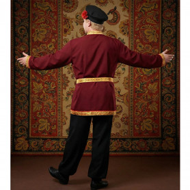 Ткань - лен небеленого цвета, плотный, мягкий, качественный. Декор, жаккардовая тесьма шириной 3 см, располагается, согласно традиции, вокруг шеи, по груди с левой стороны, на рукавах, поясе, по низу косоворотки.