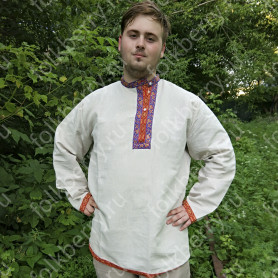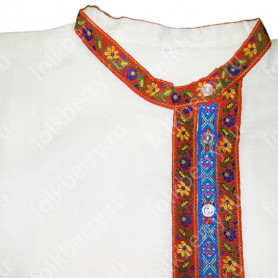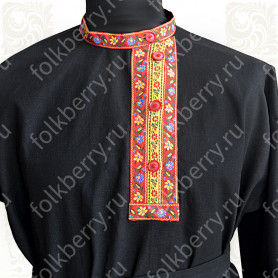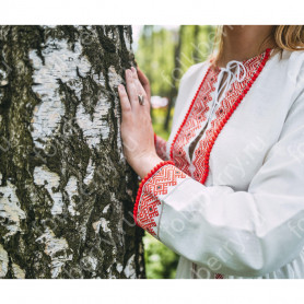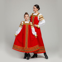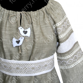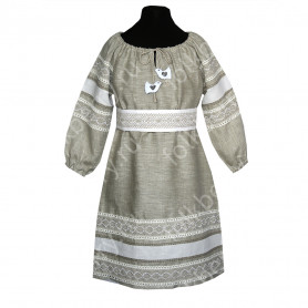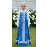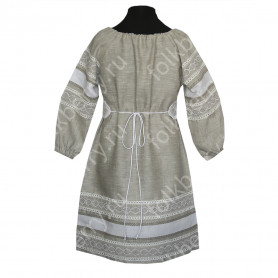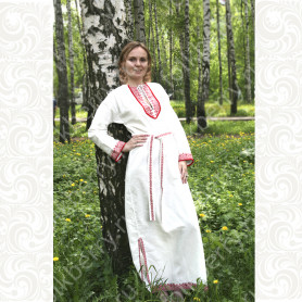 Декор платья - жаккардовая тесьма со славянскими символами. Талия немного завышена, пояс в комплекте.
