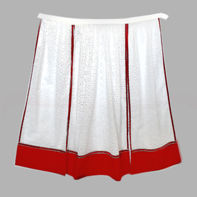 Платье Дмитра удлиненное ( миди, до щиколотки) станет отличным вариантом сценического костюма! Сочетание белого и красного цвет, длинная юбка  придают платью торжественности. Свободный силуэт, рукав реглан, регулируемая горловина добавляют вещи комфортности.