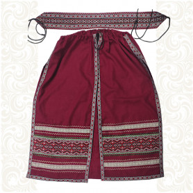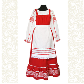 Декор платья - жаккардовая тесьма со славянскими символами. Талия немного завышена, пояс в комплекте.