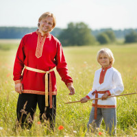 Данная модель привлекает внимание сочным бордовым цветом и благородным, тканным орнаментом на груди. Рубаха «Молодецкая» выполнена из натурального, плотного, умягченного льна. Хороший, оригинальный подарок важному для Вас человеку. В комплекте имеется пояс. По индивидуальному заказу можно подобрать порты.