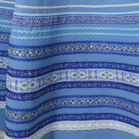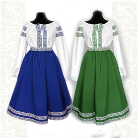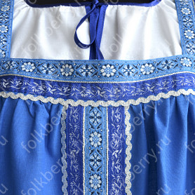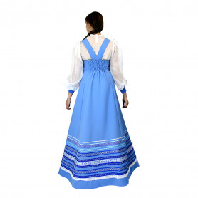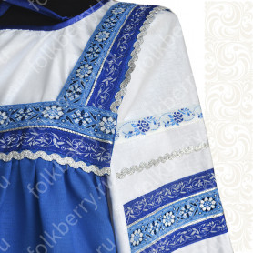 Сарафан с блузой «Гжель-2» – яркий наряд в духе народных традиций. Оригинальный дизайн, красивые оттенки синего, бирюзового, белого цветов, качественное исполнение комплекта порадуют Вас. Это хороший выбор для участников танцевально-театральных коллективов.