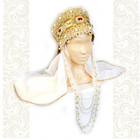 Чтобы костюм получился по-настоящему завершенным, можно добавить женские головные уборы, выполненные в русском стиле, – «кокошник», «сорока», или «очелье». Ну и какая красавица обойдется без ярких красных бус?!